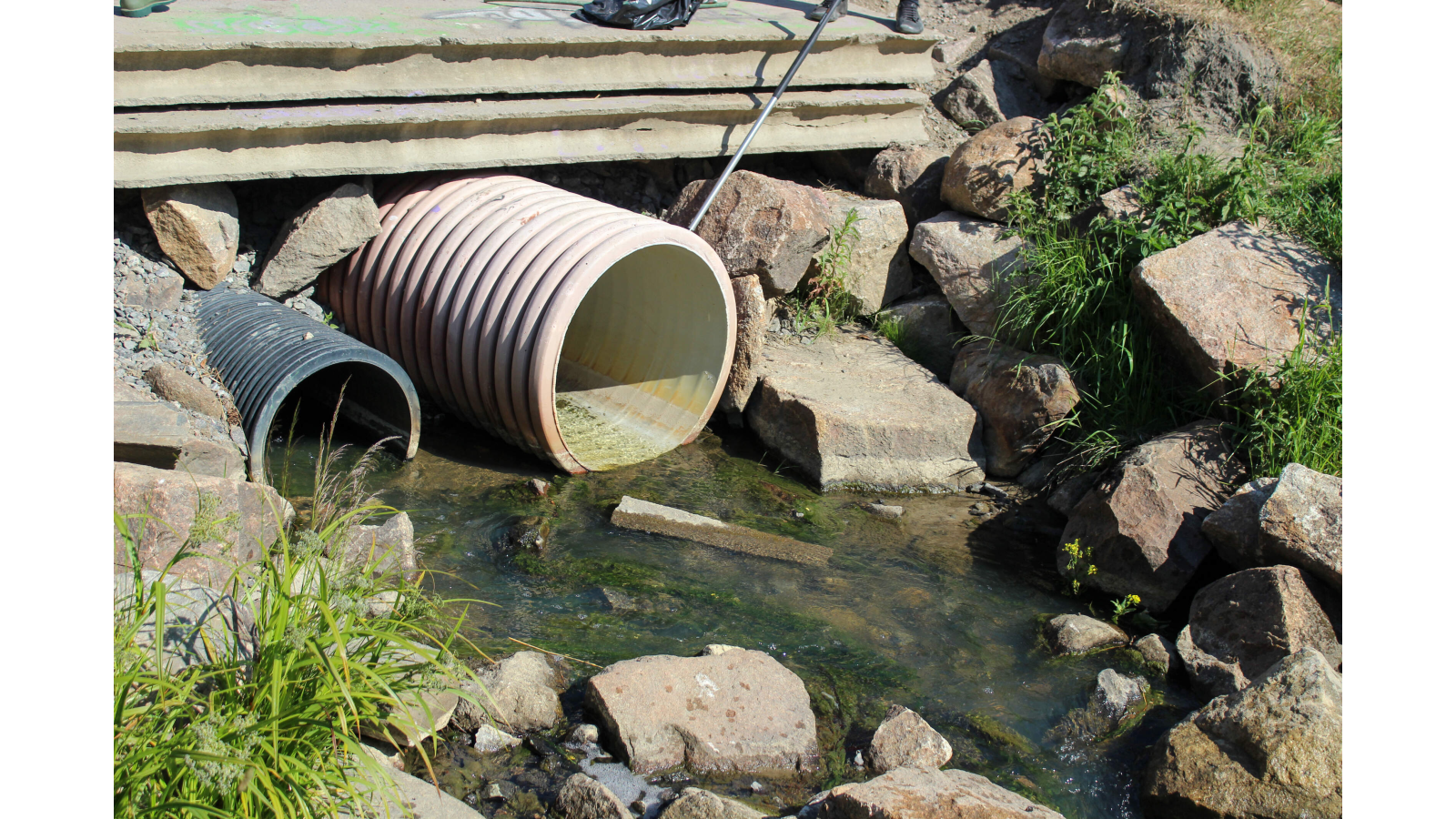 Kaksi muovista putkensuuta Krakanojassa.