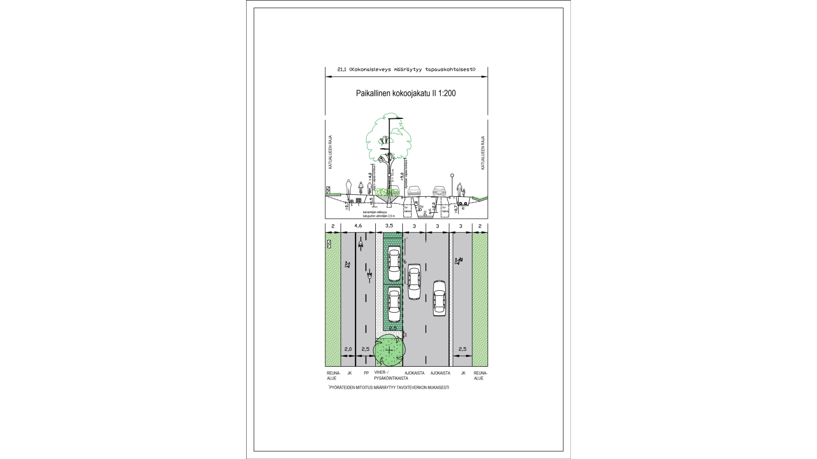 Kadunvarsipysäköinti alueellisen kokoojakadun varressa ei ole lähtökohtaisesti sallittua. Kadunvarsipysäköinti on kuitenkin mahdollista maankäytölliset tarpeet, kuten kivijalkaliiketilat, huomioiden.